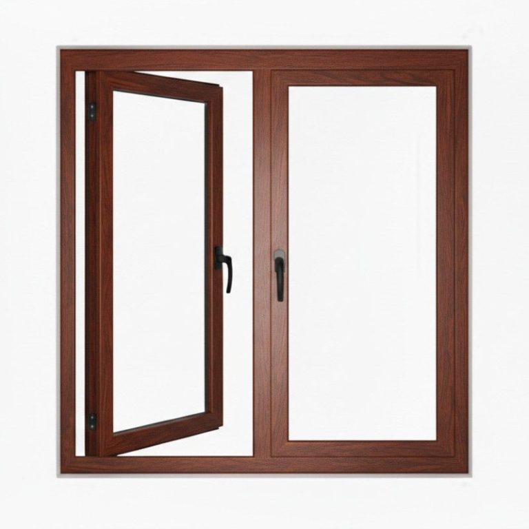 Ventana Abatible A4100 Tono Perfil Aluminio Acabado Amaderado Caoba Desde US$14.50 pie cuadrado.